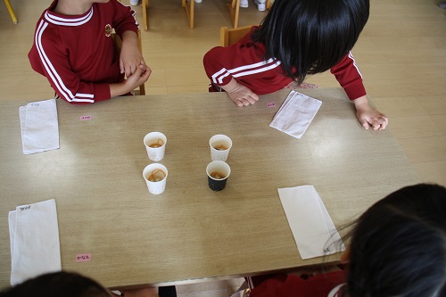 今回は野菜の廃棄部分(タマネギのかわ)を利用して白地のハンカチを染めました。